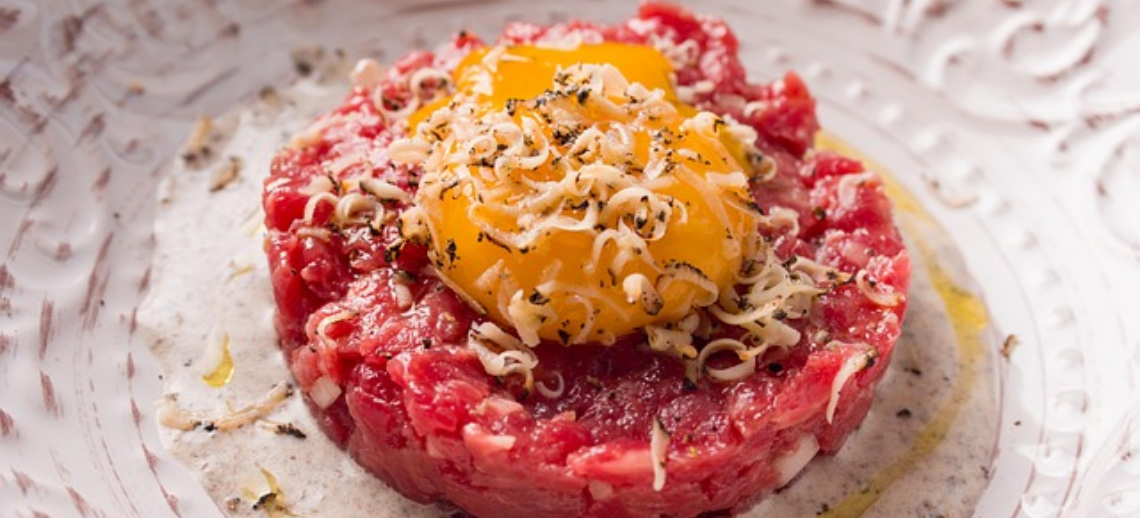 Assaisonner la viande avec le vinaigre pour sushi,le poivre, le sel, le ketchup, la mayonnaise à la roquette, un trait de tabasco, le parmesan et l’huile d’olive.